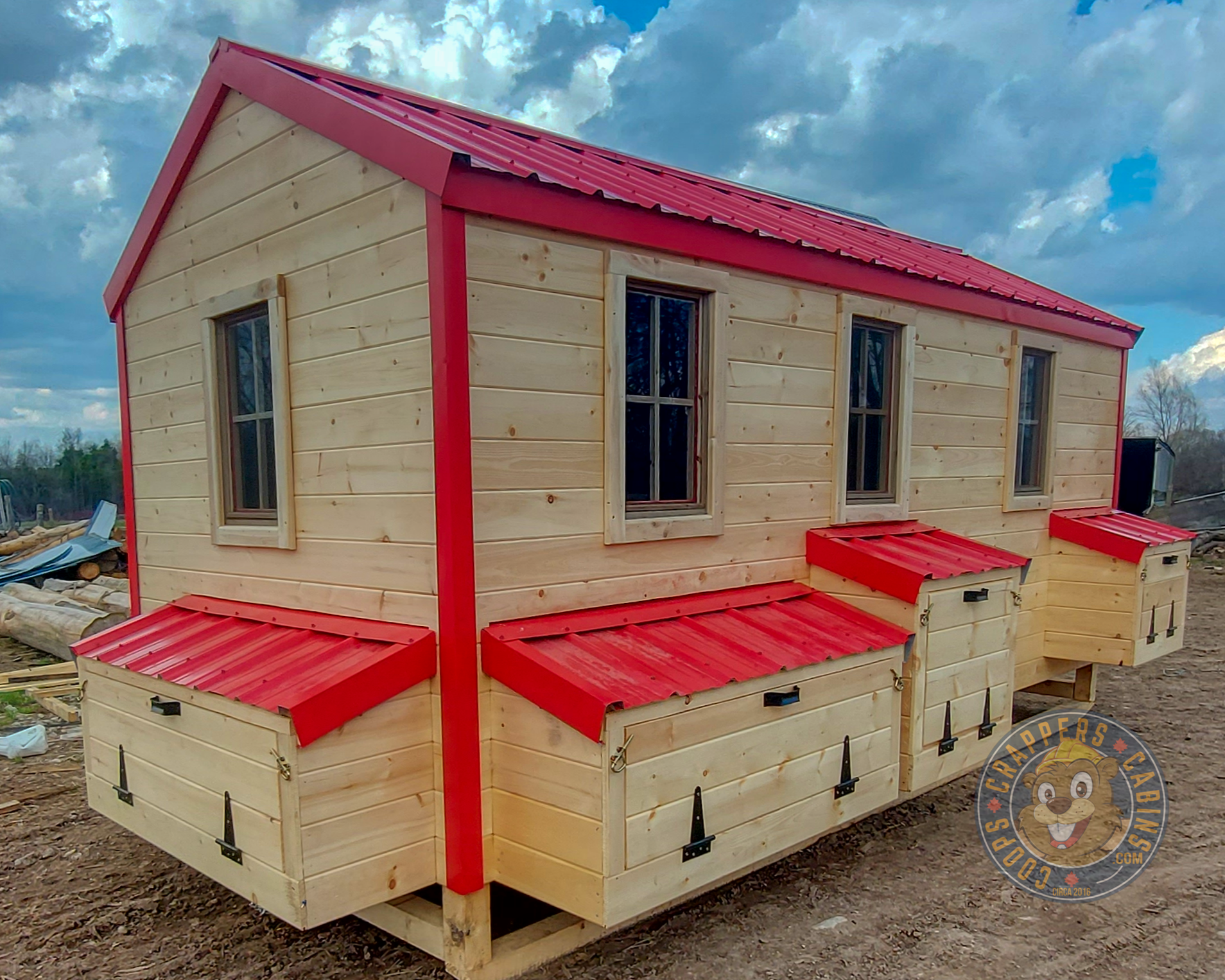 Our custom chicken coops will have your chickens living in luxury. Ranging from 6' x 6' to 8' x 12', our coops can be customized with everything you need to start caring for chickens, or take your care to the next level.
